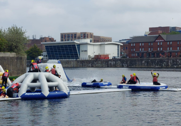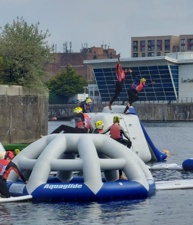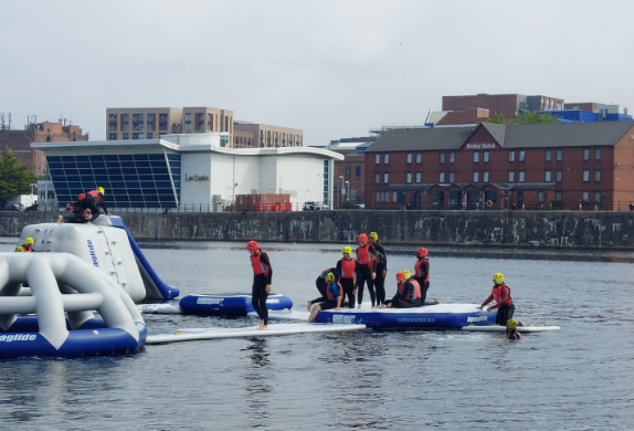 Cadets spent Sunday participating in undercover observation and hunting zombies. Monday morning was spent in King’s Dock in Liverpool on the Aquapark, taking turns paddle boarding and on the inflatable park. This afternoon they went on a treasure hunt around Albert Dock.