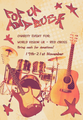 Pop up and Busk is a Sixth Form ran event to raise money for charity, where students sing and play instruments around school at lunchtime. This year Pop Up and Busk is running at lunchtimes from the 17th of November to the 21st of November. We ask that students bring in small cash donations for this. Thank you very much from the Year 12 Music Students.