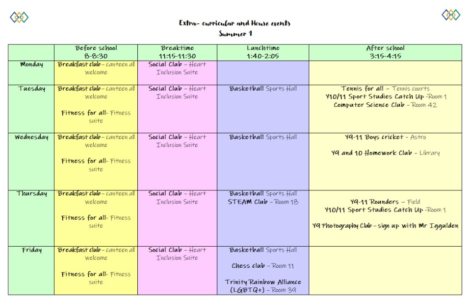 Please ensure your child has pens, pencils and any equipment needed for their day. Please also ensure your child has a refillable water bottle to keep them hydrated throughout the summer term.